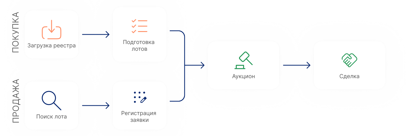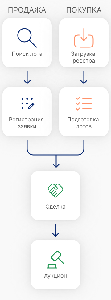 - Загружать реестр (портфель долгов) к лотам своей организации